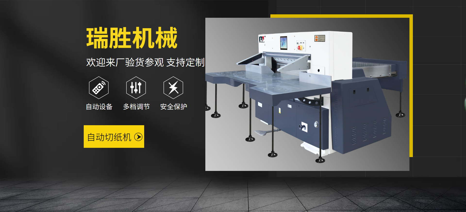 瑞安市瑞勝機(jī)械有限公司是一家專業(yè)集“生產(chǎn)、銷售、服務(wù)”于一體的印刷包裝機(jī)械企業(yè);有二十余年專業(yè)制造切紙機(jī)的經(jīng)驗,在切紙機(jī)行業(yè)中享有較高聲譽(yù)。研制出集光、機(jī)電、液為一體的高性能高品質(zhì)的切紙機(jī)系列產(chǎn)品,主要產(chǎn)品有電腦切紙機(jī),雙液壓電腦切紙機(jī),雙導(dǎo)軌數(shù)顯切紙機(jī),快捷式壓痕機(jī)系列,覆膜機(jī)、上光機(jī)、燙金機(jī)等系列產(chǎn)品。